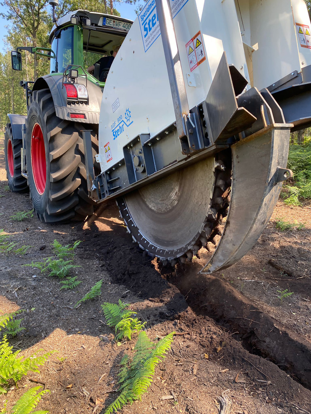 Mit unserer Grabenfräse STEHR SGF 800 können wir in kurzer Zeit Kabelkanäle mit einer Breite von 30 cm und einer Tiefe von bis zu 80 cm fräsen.