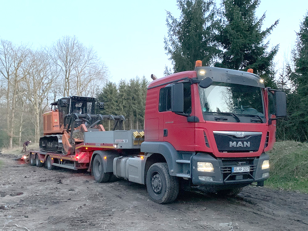 Zur Verfügung stehen hier Tieflader in verschiedenen Größen, auch mit Überbreite und Länge bzw. bis 44 to. zGG. und Radmulden.